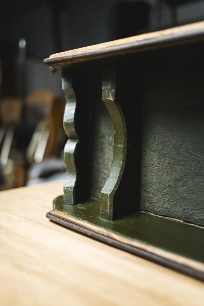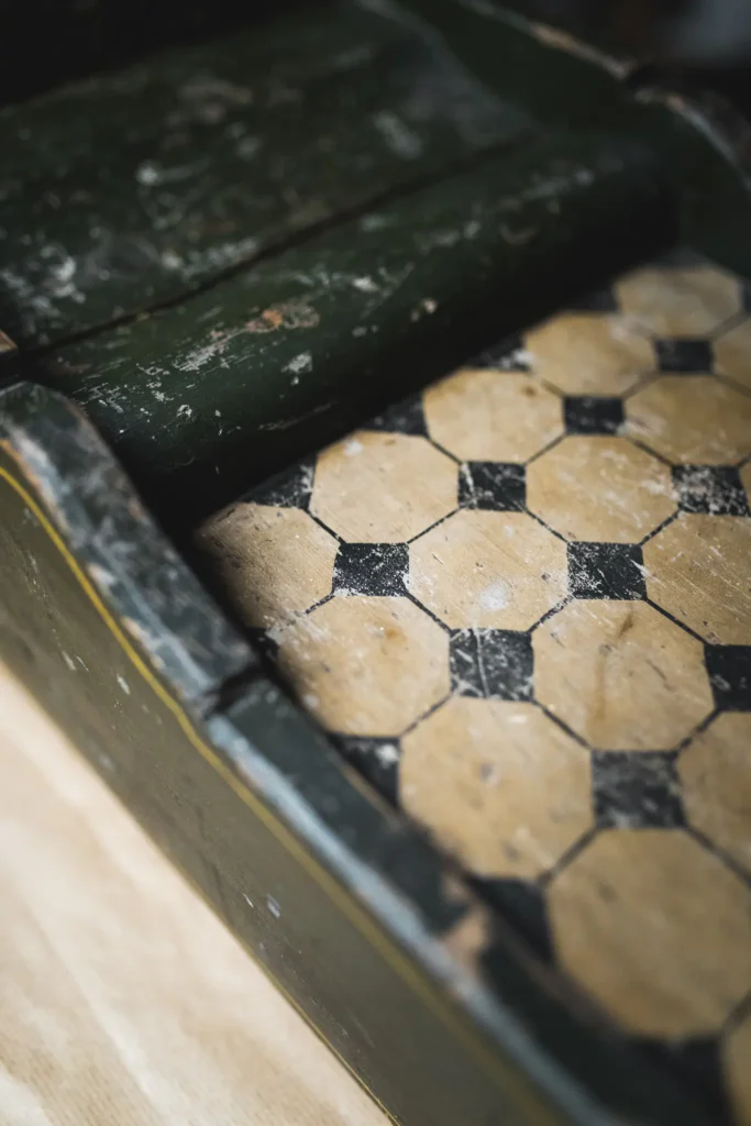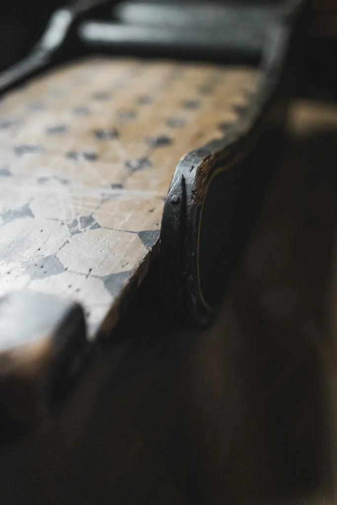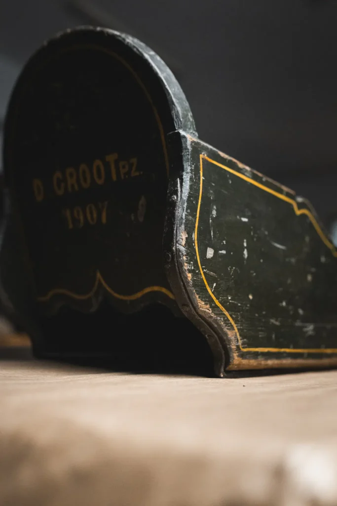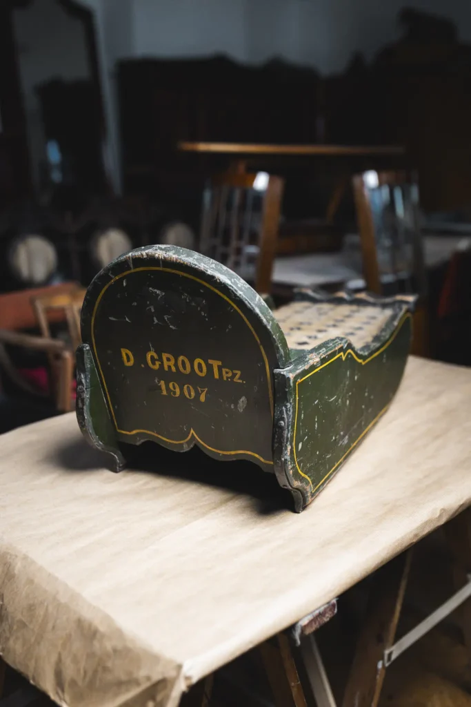 At Square Drop studio, we recently completed work on a Dutch “prikslee” (sleigh) dating back to 1907. This piece has taken on a new role as a home decor element—a statement piece designed to highlight the character of an interior.