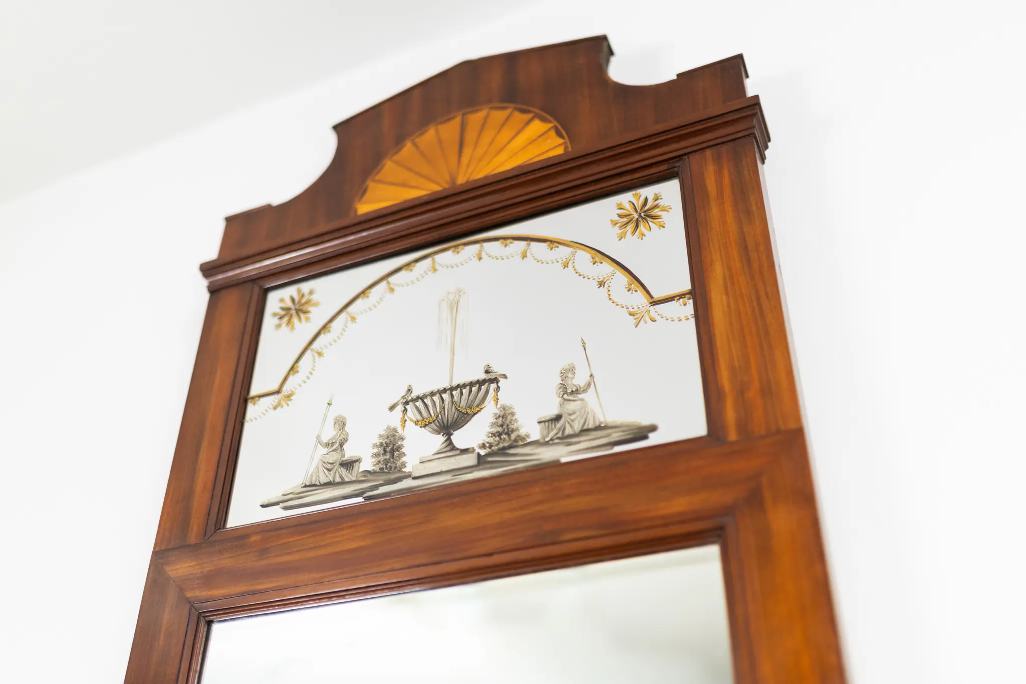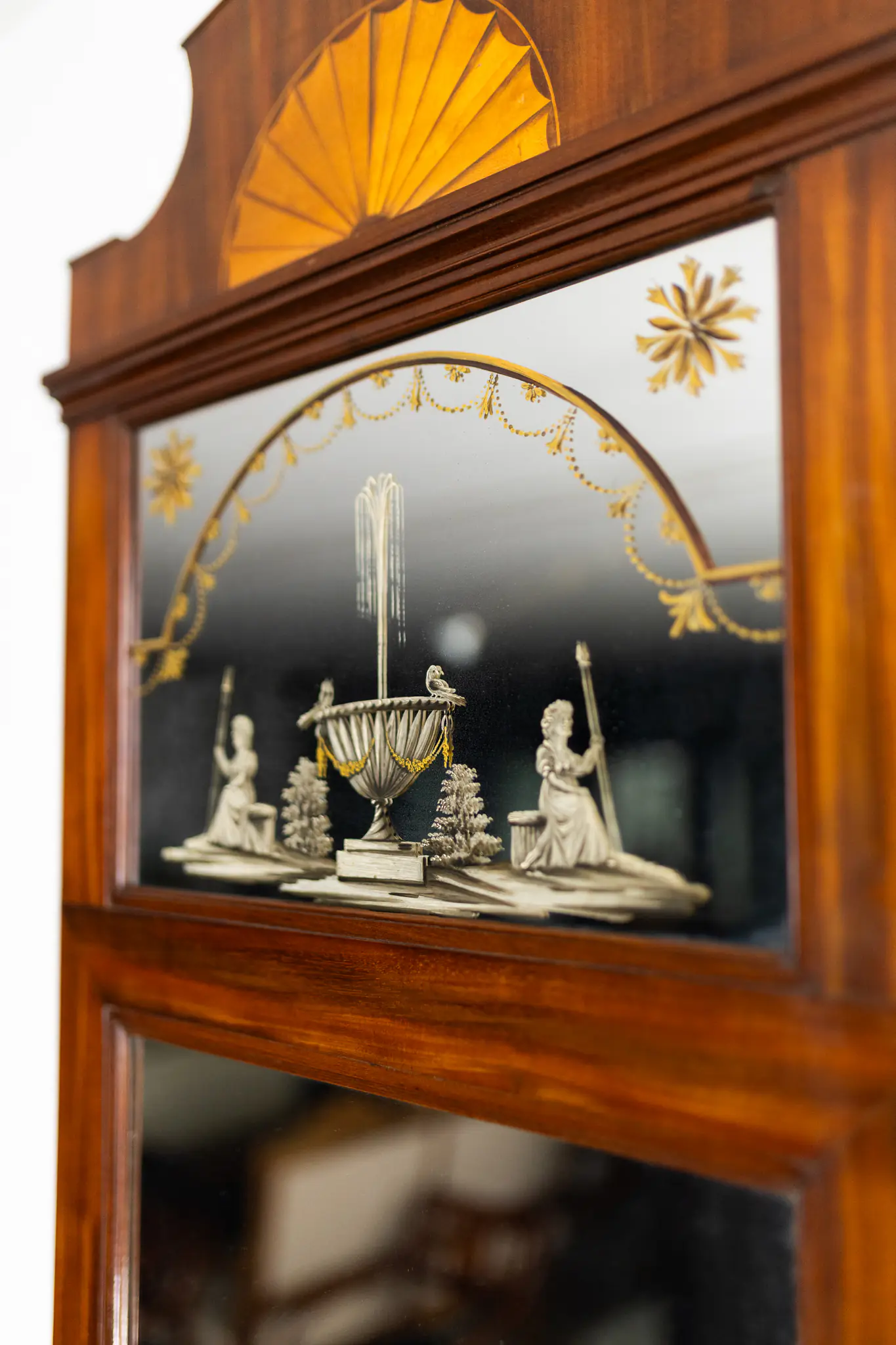 Górna tafla lustra oryginalna, z klasycystyczną dekoracją malarską przedstawiającą charakterystyczną dla stylu scenę alegoryczną nawiązującą do antyku.